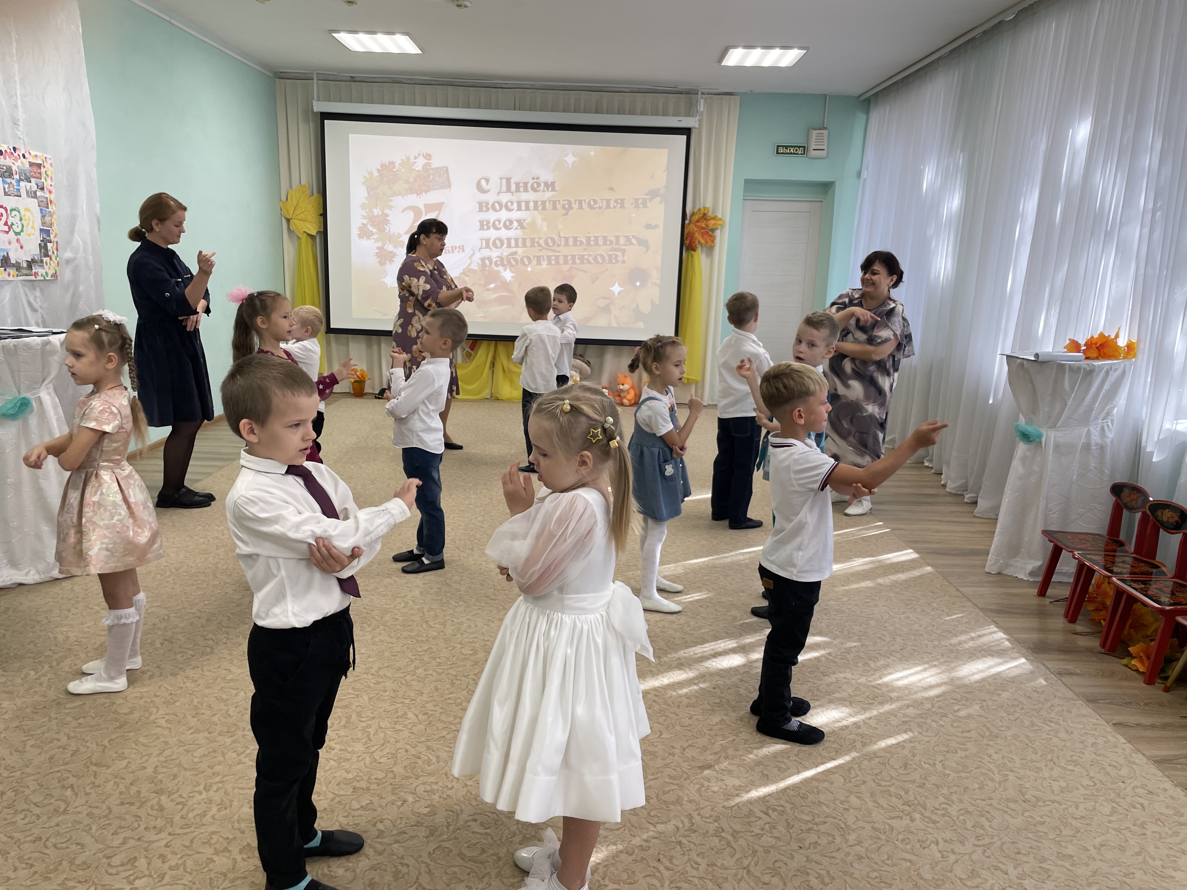 В детских садах проходят многочисленные торжественные мероприятия: тематические беседы, игровые квесты, праздничные концерты. Дети с удовольствием дарят творческие номера для педагогов и ветеранов педагогического труда в ходе поздравительных концертов, оставляют теплые поздравления в открытках.