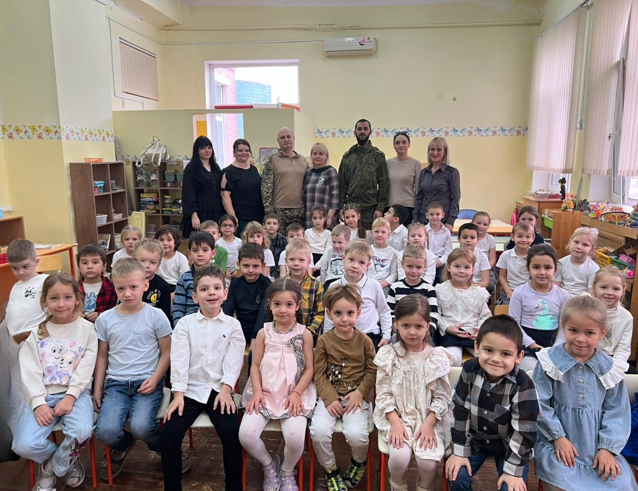 Самыми трогательными моментами стали встречи с гостями. В детские сады №№ 57, 90, 139, 209 пришли папы воспитанников – участники специальной военной операции. Их живые, искренние рассказы о службе, товариществе и любви к Отечеству стал для детей самым важным и запоминающимся уроком.