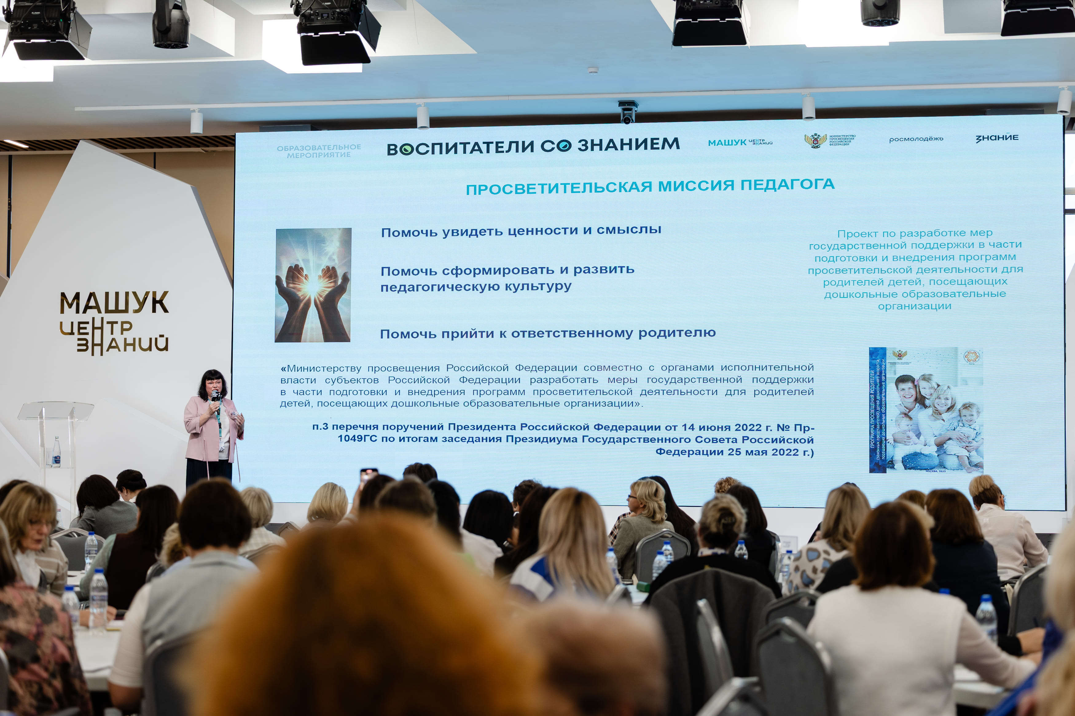 С 27 по 30 сентября в Центре знаний «Машук» в Пятигорске прошла образовательная программа «Воспитатели со Знанием». В ней приняли участие 180 педагогов дошкольных образовательных организаций из 71 региона России. Одним из делегатов от Краснодарского края стала Разумная Ольга Сергеевна, главный специалист отдела анализа и поддержки дошкольного образования МКУ КНМЦ.