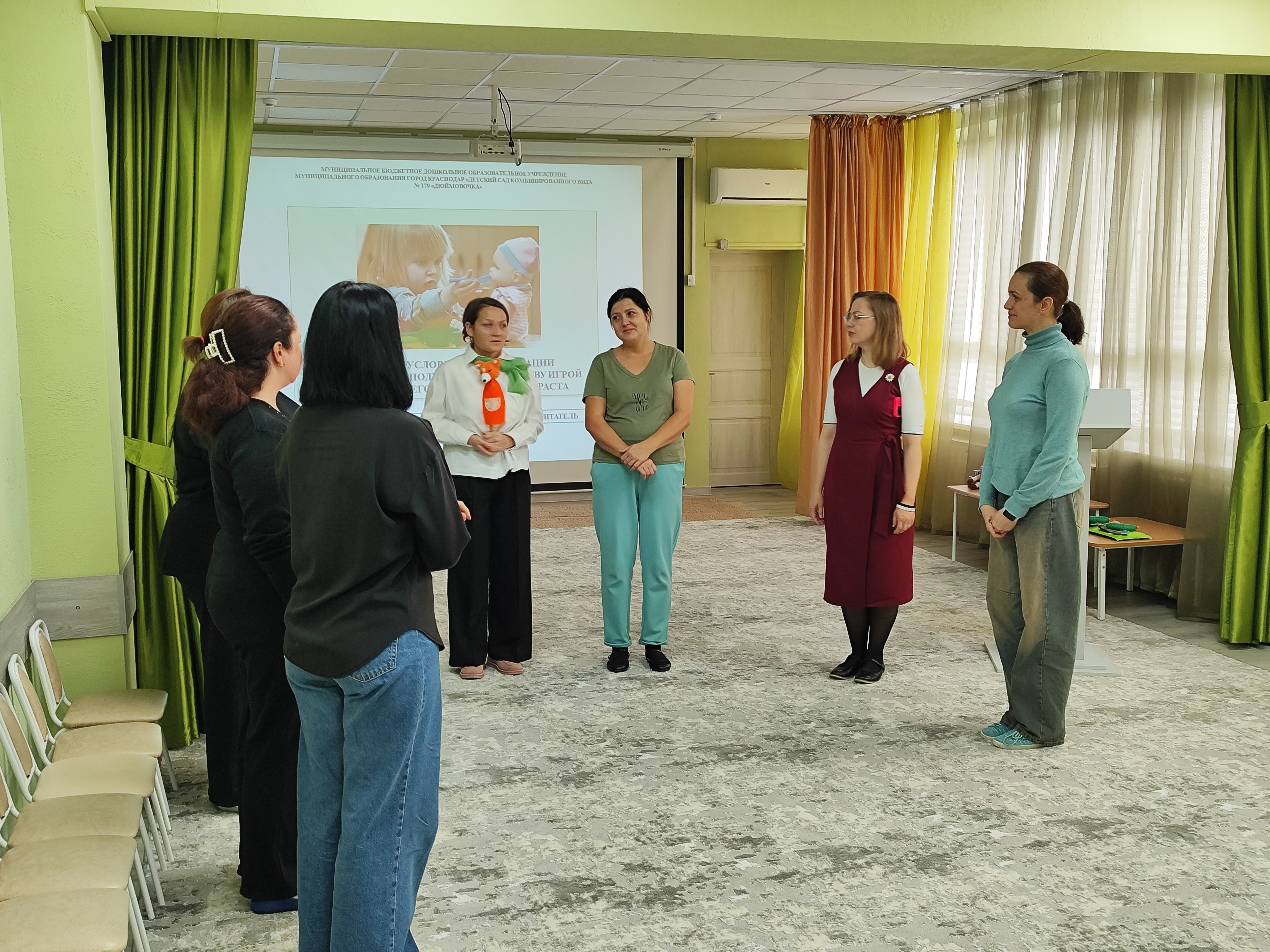 Детский сад № 179 очередной раз открыл свои двери для тех, кто понимает важность организации в детском саду игровой деятельности, в особенности творческой игры. О важности этого вида деятельности для личностного развития ребёнка, о необходимости знания закономерностей руководства игрой напомнила в начале мероприятия главный специалист отдела анализа и поддержки дошкольного образования Ирина Вениаминовна Мигунова.