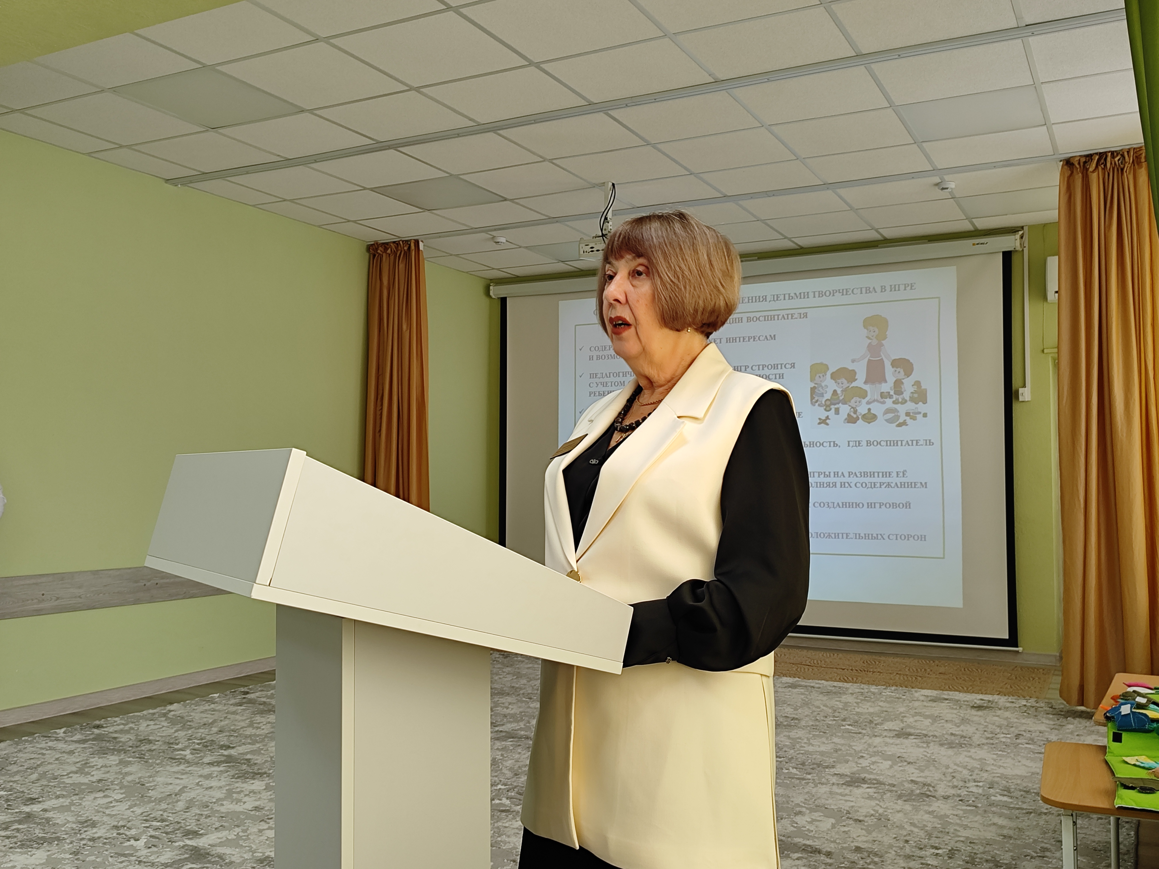 О теоретических подходах ведущих педагогов и психологов к созданию условий для реализации комплексного подхода к руководству игрой детей младшего и среднего дошкольного возраста и практическом наполнении этого направления подробно рассказала руководитель методического объединения по руководству игровой деятельностью старший воспитатель детского сада № 179 Марина Арнольдовна Логвинова.