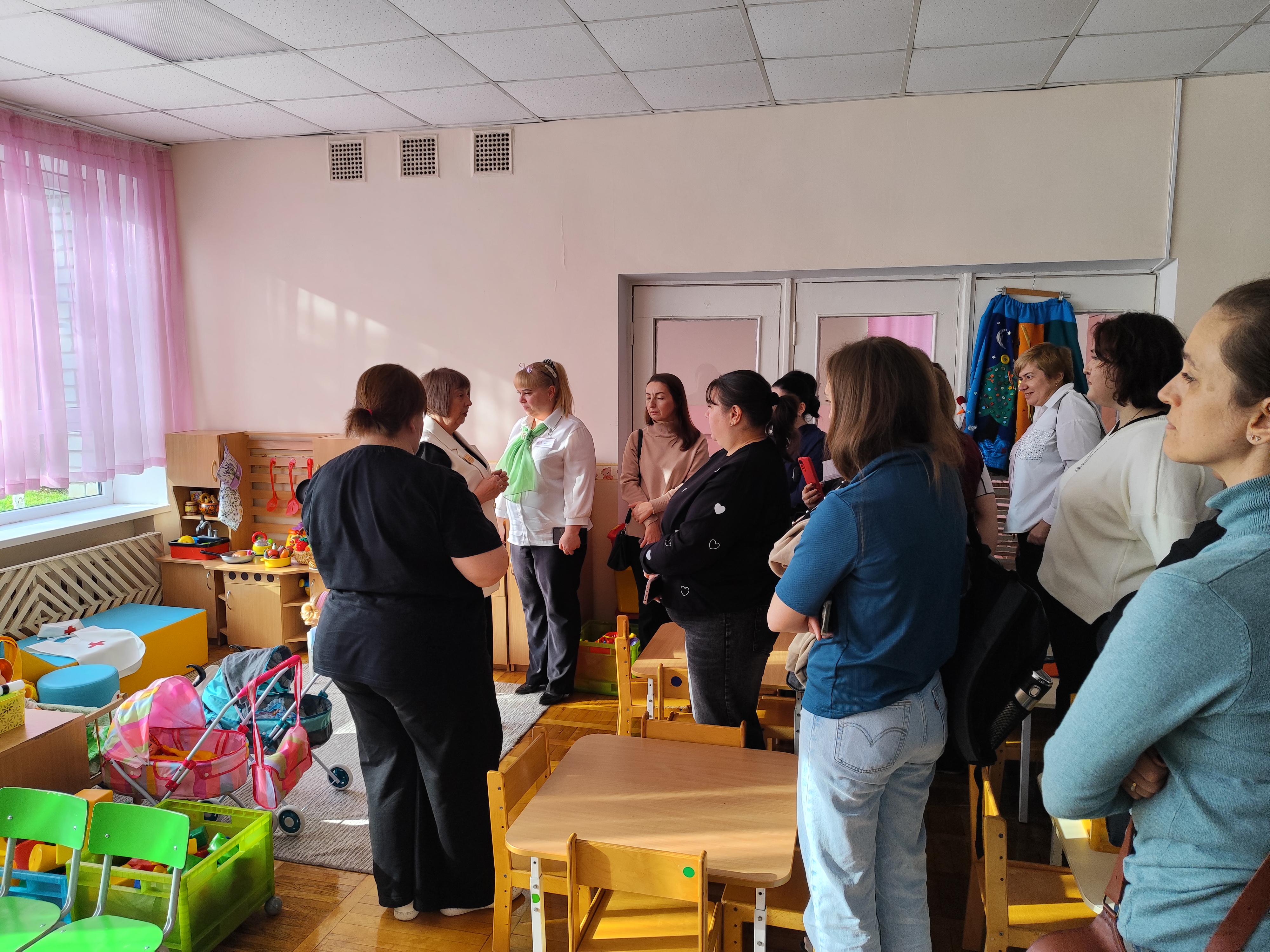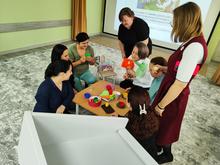 Воспитатель группы раннего возраста детского сада Ольга Васильевна Жемчужникова представила элементы предметно-игровой среды в своей группе – сначала в рамках презентации, затем – в ходе экскурсии в группу.
