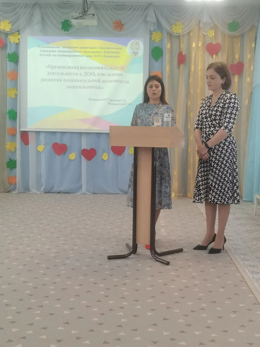 В теоретической части мероприятия прозвучали напутственные слова будущим руководителям детских исследовательских проектов от многолетних членов жюри конкурса исследовательских работ и творческих проектов дошкольников и младших школьников "Я-исследователь" на муниципальном, краевом и всероссийском уровнях. Карлаш Светлана Ильинична, заместитель заведующего МАДОУ МО г. Краснодар "Центр-детский сад № 181", заслуженный учитель Кубани, член жюри секции "Физика, математика и техника" рассказала как подготовить ребёнка к участию в конкурсе. Демидова Елена Валентиновна, заведующий МАДОУ МО г. Краснодар "Центр-детский сад № 63" обозначила как избежать типичный ошибок при организации исследовательской деятельности дошкольников. Педагоги, под руководством которых воспитанники заняли призовые места на конкурсе, подробно описали этапы реализации детских исследовательских проектов.