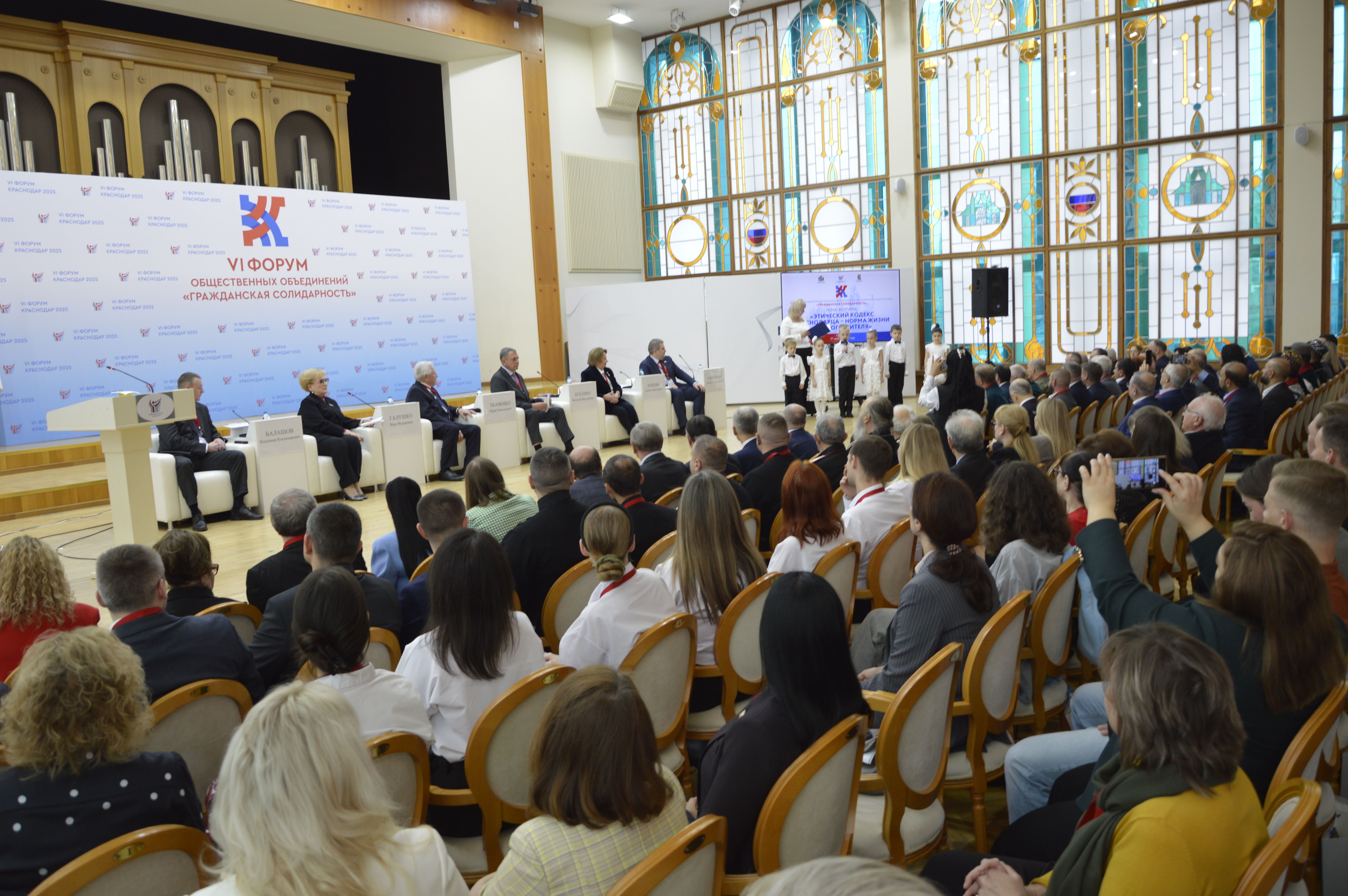 Итоговое мероприятие форума началось с выступления воспитанников детского сада № 94, которые в стихотворной форме напомнили участникам основные постулаты Этического кодекса краснодарца. Представители Общественной палаты подарили ребятам памятные сувениры. Такой старт мероприятия подчеркнул, что Этический кодекс – не просто свод правил для взрослых, а основа, которая закладывается с детства и касается каждого жителя, от мала до велика.