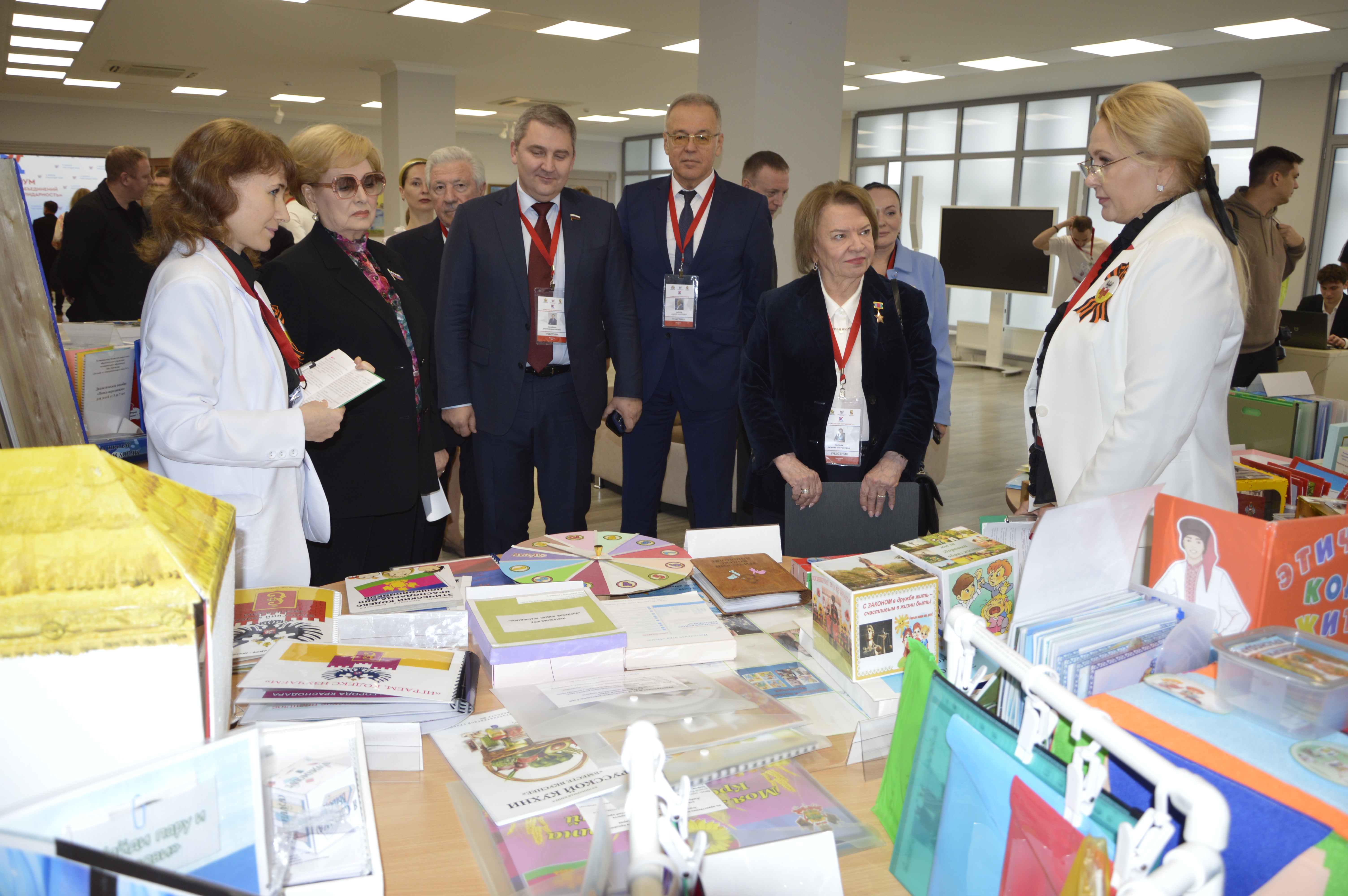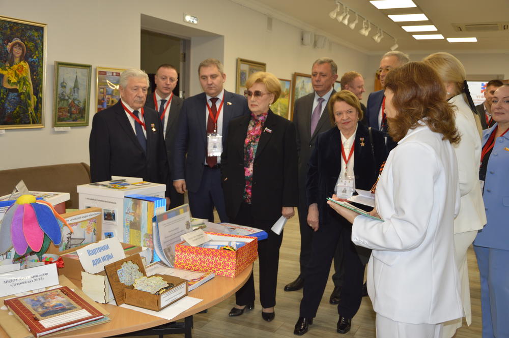 В холле была организована выставка работ дошкольных образовательных организаций по итогам проведения конкурса на лучшее мероприятие по продвижению Этического кодекса краснодарца и разработке методики его изучения в образовательных организациях муниципального образования город Краснодар. Педагогами разработаны картотеки увлекательных игр, кубы-рассказчики, фотоальбомы, бизиборды, лэпбуки и другие пособия, которые делают информацию более наглядной и понятной для детей.