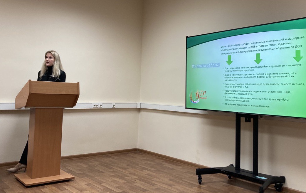 Перед участниками Школы выступила Анастасия Владимировна Самолюк, заместитель директора «Центра творческого развития «Центральный». Она рассказала об опыте наставнической деятельности по подготовке своих коллег к участию в различных конкурсах профессионального мастерства. Анастасия Владимировна обратила внимание присутствующих на требования и критерии оценки конкурсного испытания, дала полезные советы по подготовке к открытому занятию, порекомендовала структуру проведения самоанализа занятия и остановилась на типичных ошибках, допускаемых конкурсантами.